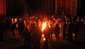 rund um ein großes Feuer, mit Öfen, Briketts und