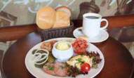 fleischsalat undeinem kleinen Rührei, dazu ein Pott Kaffee