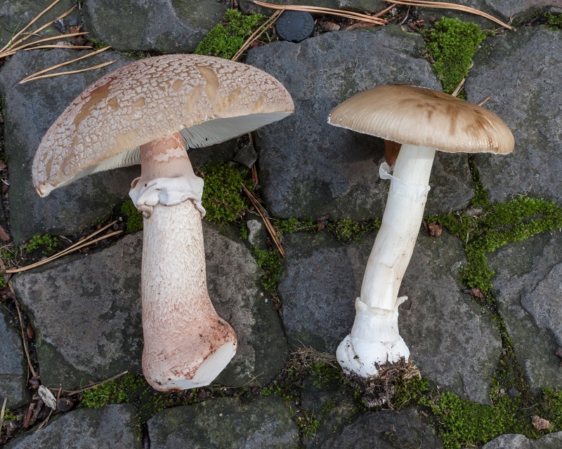Gefährlicher Doppelgänger: Der schmackhafte Perlpilz (li.) und der giftige Pantherpilz (rechts). Foto: Greiner/Charité