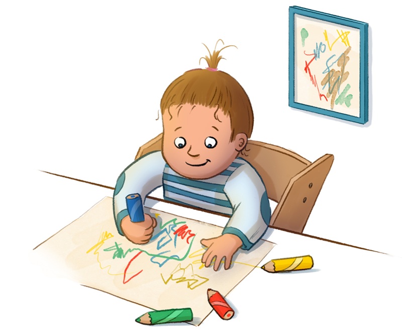 - die Feinmotorik: Das Greifen, Kneten, Reißen oder Kleben trainiert die kleinen Hände.