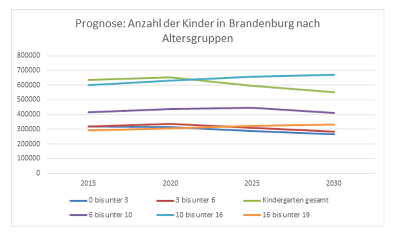 Nach den Vorausberechnungen der Bertelsmann-Stiftung wird sich die Anzahl der Kindergartenkinder von 0 bis unter sechs Jahren in Brandenburg leicht erhöhen, statt wie zuvor prognostiziert sinken. Erst ab 2020 sollen die Zahlen wieder leicht abnehmen. Einen Anstieg verzeichnen auch die anderen Altersgruppen. Allerdings beziehen sich die Prognosen der Bertelsmann-Stiftung auf die Gesamtheit der östlichen Flächenländer. Die dadurch entstehenden Durchschnittswerte vernachlässigen dabei länderspezifische Unterschiede. Exklusive Zahlen nur für die Bundesländer Brandenburg und Sachsen und speziell für die Lausitzer Region liegen nicht vor. Betrachtet man jedoch die Geburtenzahlen der vergangenen Jahre in Lausitzer Kliniken, lässt sich feststellen, dass auch in den Kliniken unserer Region nach zuvor nur leichten Veränderungen im Jahr 2016 ein immenser Sprung nach oben stattfand. Teilweise wurden die meisten Entbindungen seit dem letzten Babyboom Ende der 1980er-Jahre gezählt.