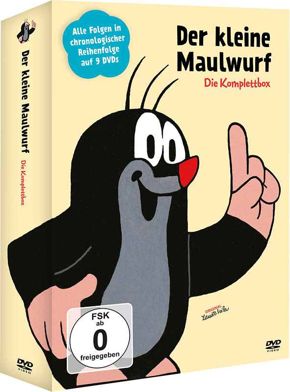Die Komplettbox auf DVD gibt es bereits im Handel. Erstmals alle 49 Folgen der Original-Serie aus der Feder des tschechischen Zeichners Zdenek Miler in chronologischer Reihenfolge und in bester Bild- und Tonqualität in einer Box. Zusätzlich gibt es 13 Bonusclips. Der kleine Maulwurf lebt mit seinen Freunden im Wald und ist mit seinem herzergreifenden Lachen bei den Großen und kleinen bekannt.