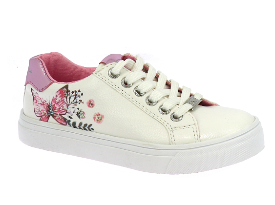 Mädchensneaker mit glattem Boden und floralen Applikationen sowie Lack und Glitzerelementen. Modell erhältlich in Größe 25-40.