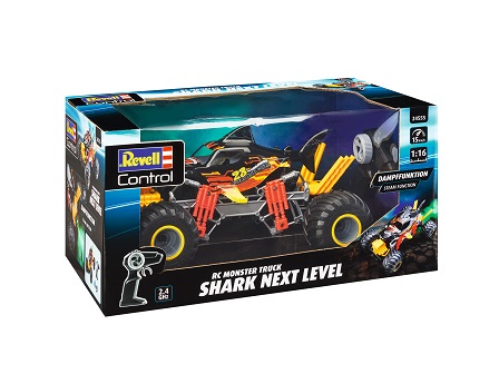 Das coole Hai-Design macht den Shark Next Level Monster Truck zum absoluten Must-Have. Mit seinen Flossen in schwarz, rot und gelb ist er nicht zu übersehen und macht auf jeder Piste eine gute Figur. Dank der Verdampfer- Funktion lässt er auch noch die Reifen qualmen und sorgt auf Knopfdruck für eindrucksvolle Dampf-Effekte. Der 7,4 V 1400 mAh Akku sorgt für genug Power unter der Haube und muss erst nach 20 Minuten Fahrspaß aufgeladen werden. Dank LED-Beleuchtung ist der Shark Next Level auch im nächtlichen Einsatz nicht zu übersehen.